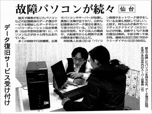 復旧料金はどうだったのだろうか。パソコンの場合、定価で30万円である。(サーバーはケースによる)NGならば0円だ。HDDを買うだけでコストがかかる以上、ディスカウントして受けていては赤字が必至だ。しかし、現実にはケースバイケースで、一切を失った人にとても定価でとは言えない。平均額を出せば10万円だと言う。ただ、ボランティア精神であるにせよ、自らが潰れてしまったのでは元も子もない。