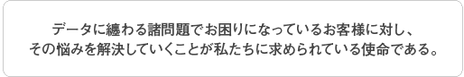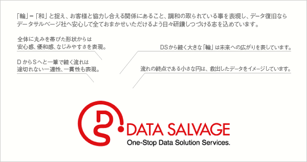 データサルベージでは、「データに纏わる諸問題でお困りになっているお客様に対し、その悩みを解決していくことが私たちに求められている使命である。」との社是をシンボリックに表しています。