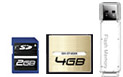 コンパクトフラッシュ(CF)、SDメモリーカード(SDカード)、メモリスティック(MS)、スマートメディア(SM)、USBメモリ、マイクロドライブなど。